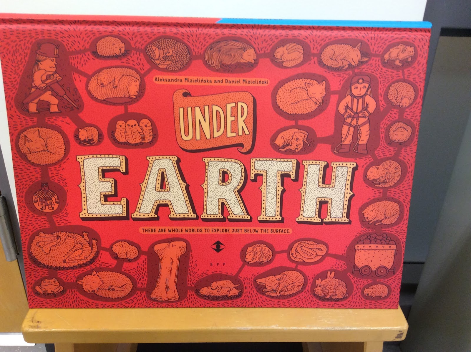 This oversized book is divided into two sections each starting from one of the covers and meeting in the middle. The reader views the book by turning it on its side. From one side we are introduced to the fascinating and mysterious world of what lies underwater. Though it includes lakes and sinkholes, the book predominately focuses on the ocean. Besides looking at the various plants and animals that live beneath water from shallow waters to the deepest known point, a great deal of information is given about human activities, as well. Like how we submerge ourselves using diving equipment, submarines, submersibles, or drilling platforms. The book starts with the shallowest levels of life and phenomena to those found deep, deep down underwater.
